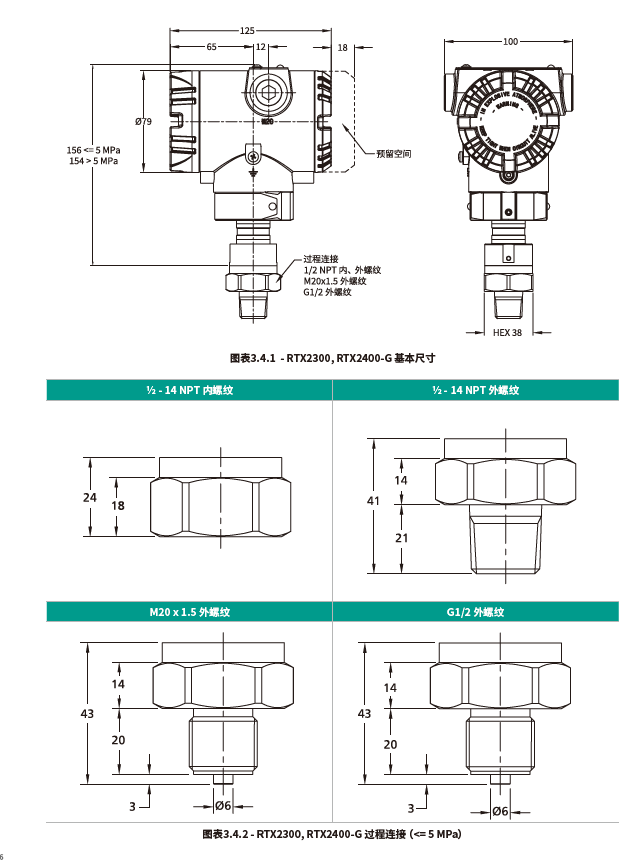 德鲁克RTX2000系列压力变送器基本尺寸: