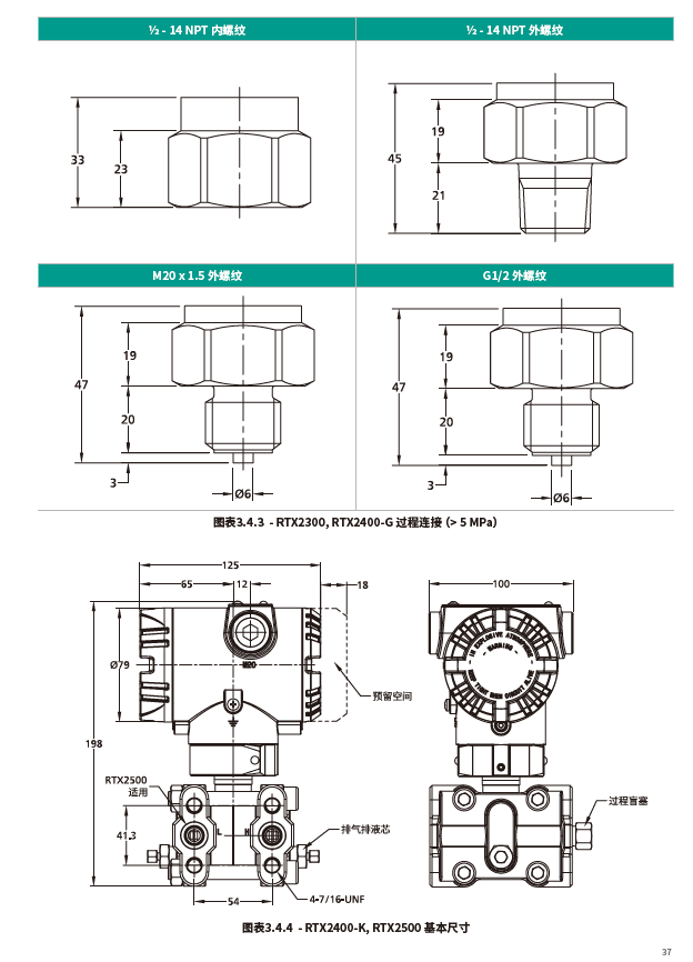 德鲁克RTX2000系列压力变送器基本尺寸:
